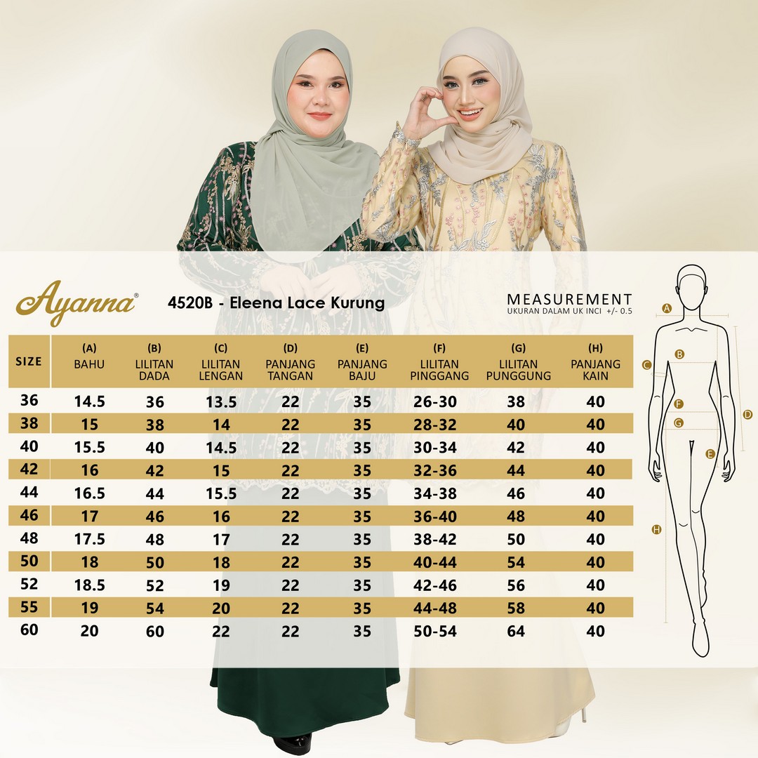 | Skirt | : Duyung Cut (Pinggang Kiri & Kanan > Getah) |