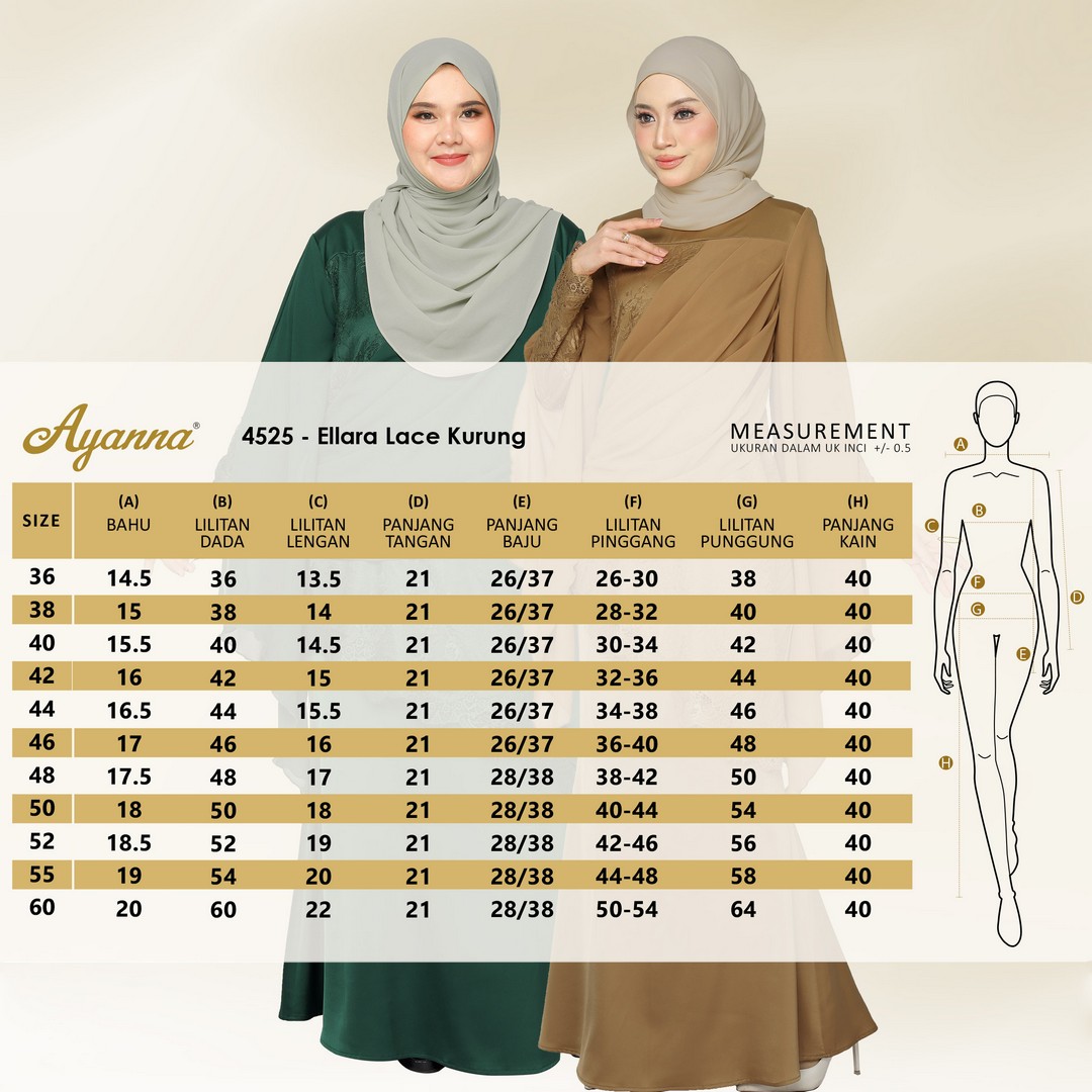 | Skirt | : Duyung Cut (Pinggang Kiri & Kanan > Getah) |