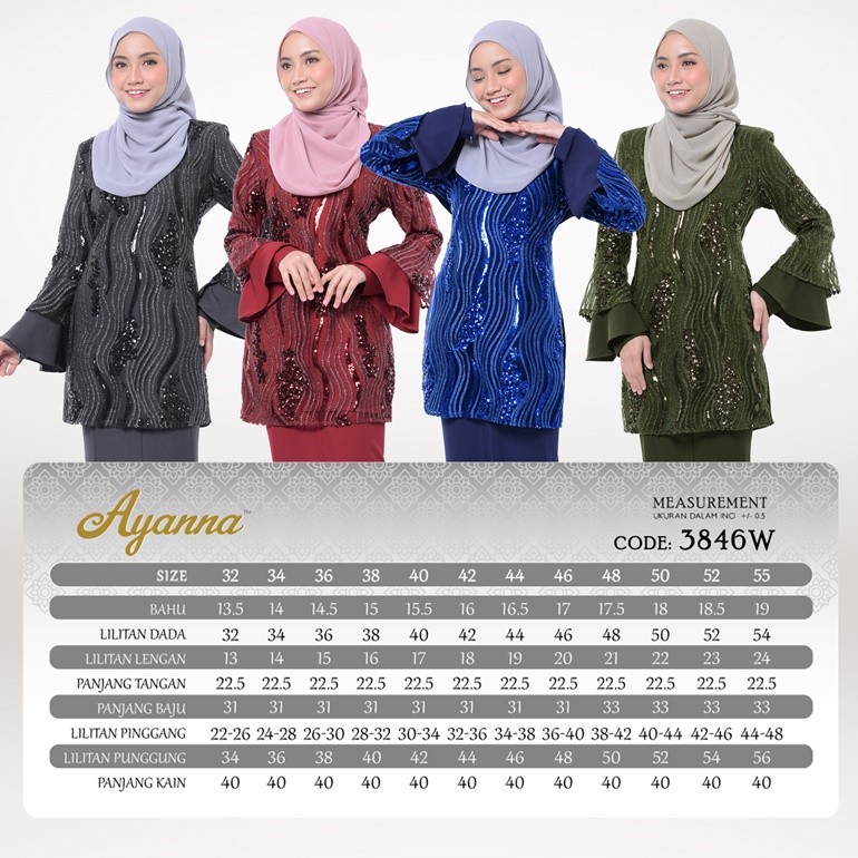 | Skirt | : Umbrella Cut (Pinggang Kiri & Kanan>Getah) |