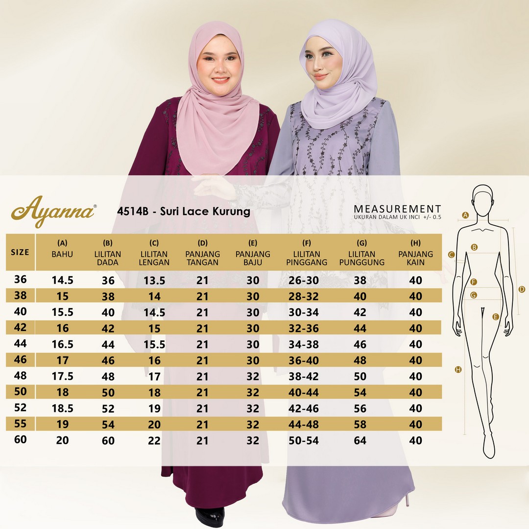 | Skirt | : Duyung Cut (Pinggang Kiri & Kanan > Getah) |
